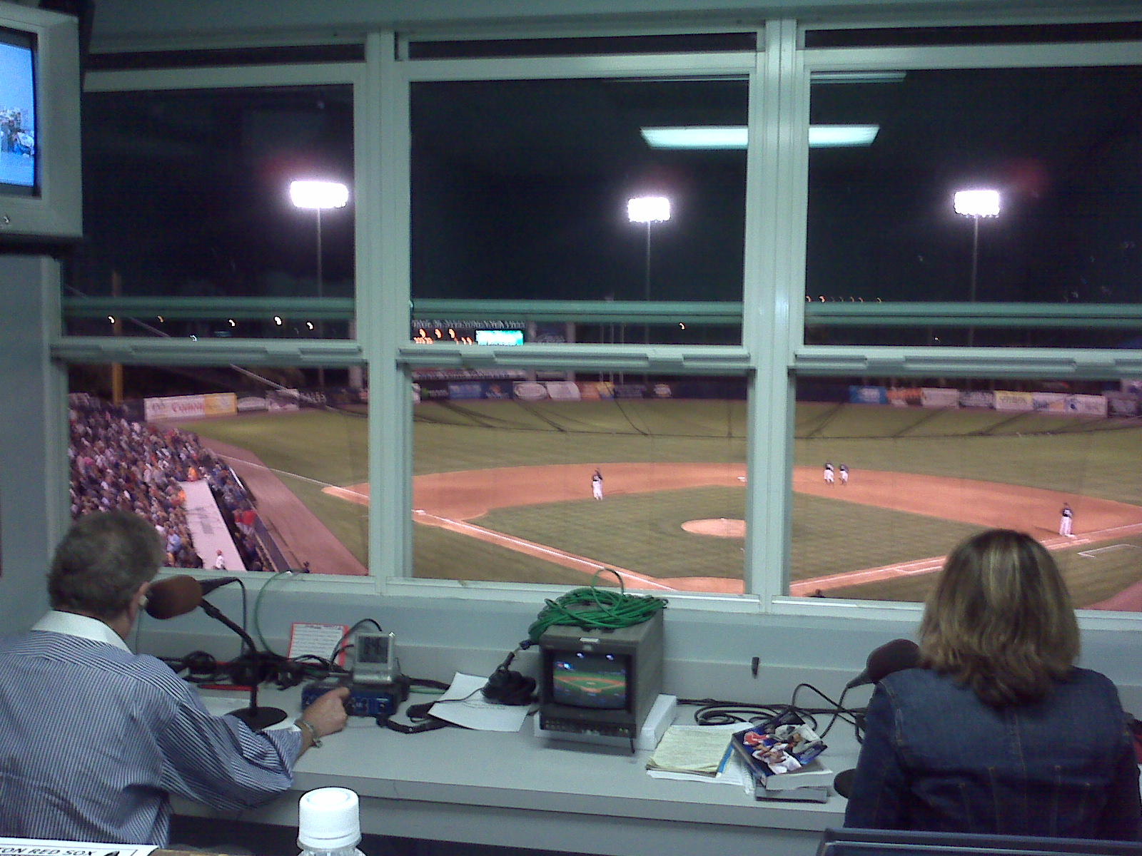 By the way no crazy fans so far screaming charge into the field mic placed just outside the booth by Carlos Silva…John and Suzyn’s producer for the radio call. The last game they did here…every time the PA would play the cavalry charge…there was a guy right by the mic screaming charge in his best Tarzan voice as Suzyn pointed out. Plus the beer and cotton candy vendors would pass under the window screaming, “BEER HERE” and “COTTON CANDY!” which prompted John to ask Suzyn if she needed anything…great moment…and we all heard it was last call for alcohol in the seventh and John again asked Suzyn if she wanted a beer before they shut things down. Tonight though there have been no incidents. I will let you know if there are.